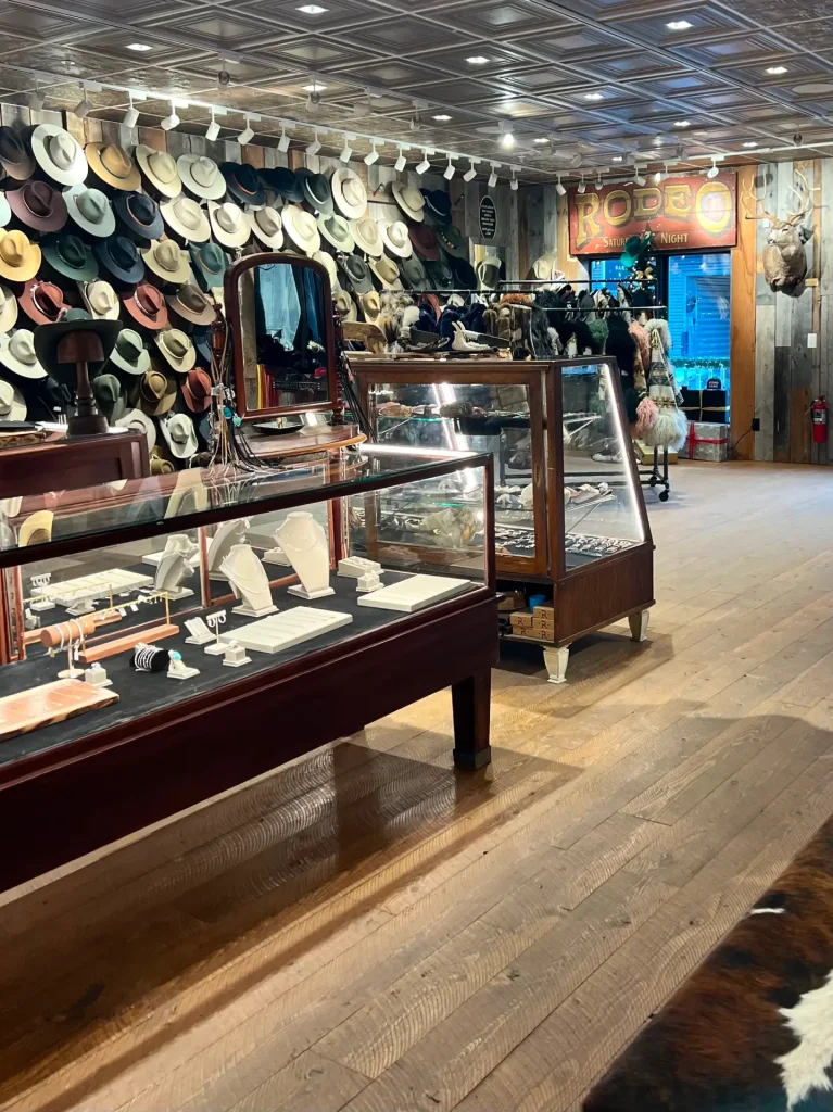 Ready to channel your Yellowstone fantasy? A stop at Kemo Sabe is a must, if nothing else than to peruse their impressive collection of handmade cowboy boots and turquoise jewelry. Kemo Sabe is known for its customizable hats, which create the perfect souvenir. You can choose between distressing, branding, bands, pins, and feathers at the hat bar.